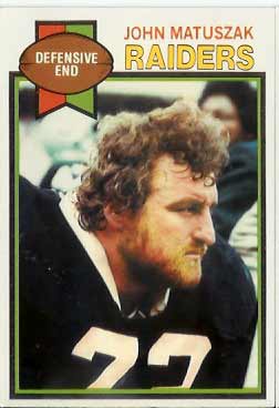As for the card, you pretty much know all about it already–it’s his 1979 Topps card, which I pullled out of a cello pack recently purchased on eBay just last week. It’s one of only 11 cards Matuszak had during his career, and it books for $0.50.